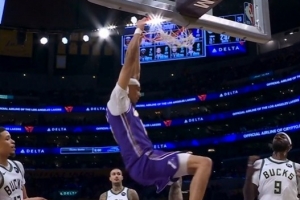風(fēng)卷殘云!湯姆林搶斷反擊快下 接球起飛單臂暴扣