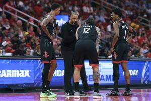 小賈巴里·史密斯?fàn)顟B(tài)奇差,整個(gè)第四節(jié)8投0中!饒是如此,火箭主教練烏度卡末節(jié)還是給了小賈巴里·史密斯10分鐘的出場(chǎng)時(shí)間(注:伊森傷退)。