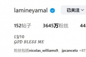 亞馬爾更換了社媒頭像,新的頭像為自己赤裸上身的圖片,背部則顯示橙色的數(shù)字“10”,象征自己接過了10號戰(zhàn)袍。