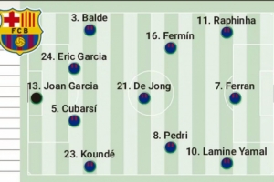 體育資訊1月11日訊 北京時(shí)間明天凌晨,巴薩將在西超杯決賽中對(duì)陣皇馬,《阿斯報(bào)》預(yù)測(cè)了巴薩此役的首發(fā)陣容。
