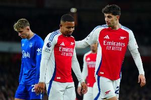 哈弗茨在比賽最后22分鐘替補(bǔ)登場(chǎng),這是他自8月以來首次上場(chǎng)。他對(duì)隊(duì)友的表現(xiàn)給予了高度評(píng)價(jià),特別是對(duì)馬丁內(nèi)利的兩個(gè)頭球破門表示贊賞,這些進(jìn)球甚至讓他自己都感到自豪。