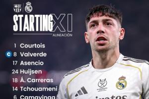 更新后的皇馬首發(fā):1-庫(kù)爾圖瓦、8-巴爾韋德、17-阿森西奧、24-赫伊森、18-卡雷拉斯、14-瓊阿梅尼、6-卡馬文加、11-羅德里戈、5-貝林厄姆、7-維尼修斯、16-貢薩洛·加西亞