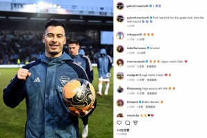 馬丁內(nèi)利也在賽后通過社媒曬出自己手持比賽用球的照片,并配文:“在這家偉大俱樂部的首個帽子戲法!晉級下一輪??????”