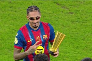 體育資訊01月12日訊 西超杯決賽,巴薩3-2皇馬蟬聯(lián)冠軍,拉菲尼亞本場(chǎng)梅開二度,當(dāng)選決賽MVP。