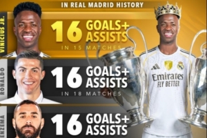 以下為皇馬隊(duì)史決賽參與進(jìn)球榜(進(jìn)球+助攻):