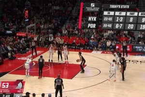 投籃對比:尼克斯45中23,開拓者40中20;罰球?qū)Ρ龋耗峥怂?中1,開拓者7中6