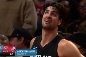 想啥呢?蘭德爾表情古怪 神情“著迷”地上下來回掃視文班全身!