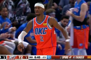 想啥呢?蘭德爾表情古怪 神情“著迷”地上下來回掃視文班全身!