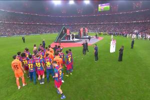 有點懵!冠軍巴薩上臺領(lǐng)獎時無人列隊,巴薩球員齊齊望向皇馬球員