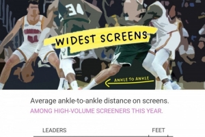 體育資訊1月13日訊 今天,數(shù)據(jù)專家Todd Whitehead統(tǒng)計(jì)了本賽季高頻為隊(duì)友設(shè)置掩護(hù)球員中的平均掩護(hù)寬度排名(掩護(hù)時(shí)左右腳踝間距),具體如下: