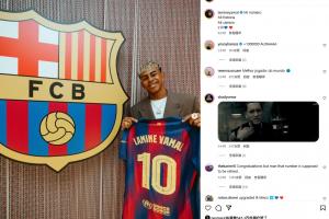 亞馬爾在社媒上曬出了自己手拿球衣的照片,隨后內(nèi)馬爾點(diǎn)贊。