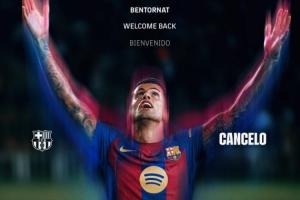 坎塞洛正式成為巴薩球員,巴薩與利雅得新月達(dá)成協(xié)議,坎塞洛將租借加盟至本賽季結(jié)束,他將身披2號(hào)球衣。