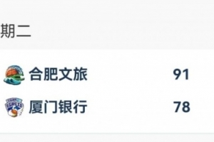 合肥文旅 91-78 廈門(mén)銀行,合肥文旅四人得分上雙,納雷德砍下24分12籃板的兩雙數(shù)據(jù),約翰遜15分,卡耶14分,張敏11分。廈門(mén)銀行同樣四人得分上雙,謝潑德28分8籃板6助攻,賴婷藝15分,謝爾比12分,蔡亞飛10分