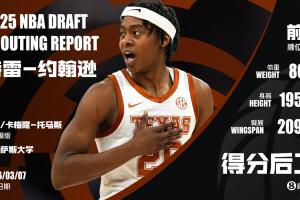 2024-25賽季,特雷-約翰遜為德克薩斯大學出戰(zhàn)33場比賽,場均登場34.7分鐘可以拿下19.9分3.1籃板2.7助攻0.9搶斷0.3蓋帽1.8失誤,投籃命中率是42.7%,三分命中率為39.7%,罰球命中率是87.1%。