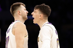 此役湖人外線開(kāi)火,全隊(duì)三分34投19中,命中率高達(dá)55.9%。東契奇三分9中5,詹姆斯三分4中2,拉拉維亞三分4中3。