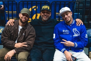體育資訊1月15日訊 杜克大學(xué)官方社媒更新,曬出了庫里父子三人在場邊看球的合照。