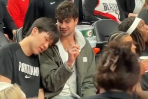 此役,楊瀚森未能獲得出場(chǎng)機(jī)會(huì),場(chǎng)邊與同樣缺陣的阿夫迪亞有說(shuō)有笑,還靠了下對(duì)方的肩膀。