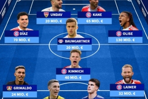 中場:路易斯·迪亞斯(拜仁)、基米希(拜仁)、鮑姆加特納(萊比錫)、奧利塞(拜仁)