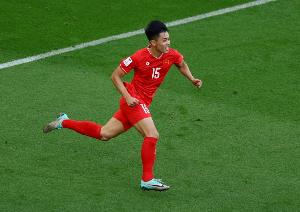 21歲的阮庭北就是越南隊的真大腿,他憑借一己之力扛著越南隊躋身四強(qiáng)。兩年前(2023年1月)的亞洲杯上,時任越南隊主帥的特魯西埃大膽啟用當(dāng)時年僅19歲的阮庭北,并讓他首發(fā)出戰(zhàn)越南與日本隊的比賽。小將不負(fù)眾望獨造兩球,其中,他在第15分鐘就頭球攻破鈴木彩艷把守的城門!