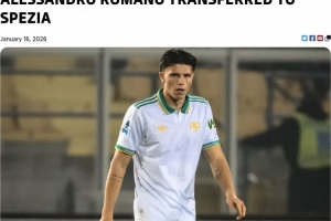 體育資訊1月17日訊 羅馬官方宣布,青訓(xùn)中場球員亞利桑德羅·羅馬諾被租借到意乙球隊斯佩齊亞。