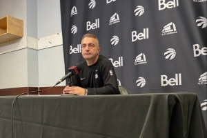賽后,猛龍主教練拉賈科維奇被問及球隊最后時刻得分困難的話題,他說:“我認為對手有太多非法拉拽和抱人動作?!?/p>