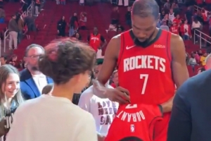 賽后,杜蘭特頻繁互動,遲遲未離開。
