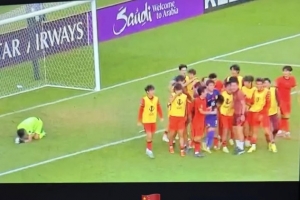 體育資訊1月17日訊 中國U23男足點球大戰(zhàn)淘汰烏茲別克斯坦U23男足晉級亞洲杯四強,中國男足中后衛(wèi)蔣光太曬照慶祝勝利。