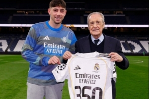 本場比賽巴爾韋德迎來自己在皇馬生涯350次出場,他也獲贈(zèng)里程碑紀(jì)念球衣,并與主席弗洛倫蒂諾合影留念。他在皇馬生涯貢獻(xiàn)33球38助攻。