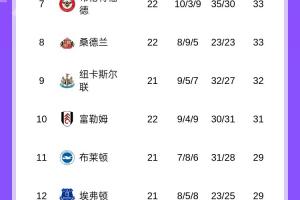 英超完整積分榜如圖: