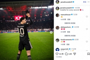 穆西亞拉也在賽后通過社媒曬出自己向球迷鼓掌致意的照片,并配文:“感激每一秒!”