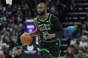 上半場,凱爾特人球星杰倫·布朗狀態(tài)火熱,首節(jié)就轟下18分,在18分鐘的時間里,投籃19中10,三分球4中1,罰球9中8,砍下29分2籃板2助攻1蓋帽的數(shù)據(jù),正負值+24。