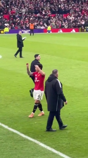 曼聯(lián)2-0曼城賽后,利桑德羅作手勢回應(yīng)嘲諷