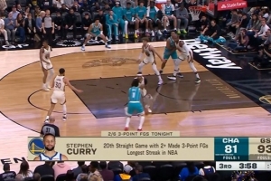 庫里連續(xù)20場比賽至少命中2記三分史上最長