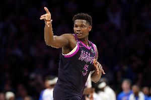 全場(chǎng)比賽,森林狼球星愛德華茲出戰(zhàn)40分06秒,33投19中,三分16中9,罰球10中8,空砍生涯新高的55分,另有4籃板3助攻進(jìn)賬,正負(fù)值+8。