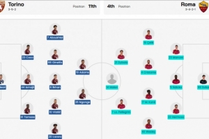 體育資訊1月19日訊 北京時(shí)間凌晨1點(diǎn),意甲第21輪,都靈vs羅馬的首發(fā)陣容公布。