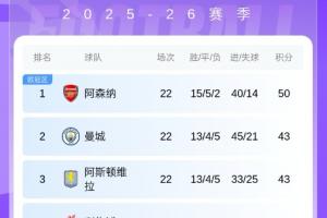 但因本輪排名第2的曼城和排名第2的維拉均吞敗仗,曼城0-2輸?shù)袈械卤?,維拉主場0-1不敵埃弗頓,阿森納仍成功擴大分差。從上一輪的6分領先擴大至7分領先!