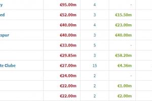 截至目前,曼城已簽下塞梅尼奧和格伊,分別花費(fèi)7200萬(wàn)歐和2300萬(wàn)歐。冬窗轉(zhuǎn)會(huì)支出前十英超占了5席。