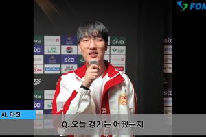 Tarzan:首先今天贏了比賽心情非常好,而且因?yàn)槭荁o3賽制,感覺(jué)結(jié)束得比較快。