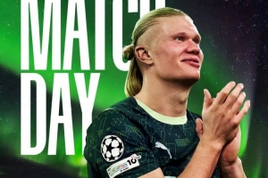 曼城官方社媒曬出為此役制作的海報(bào),哈蘭德出鏡,背景為北極光下的阿斯普米拉體育場(chǎng)。