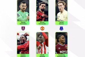 體育資訊1月20日訊 英超官方公布第22輪最佳球員候選,梅努攜手B費(fèi)等6人入圍。