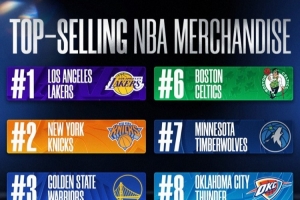 上半賽季球隊球衣銷量!湖人尼克斯勇士前3 馬刺第4 雷霆第8