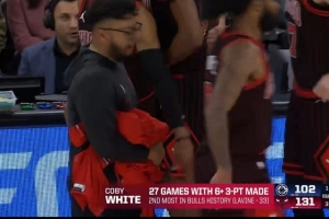 懷特已經(jīng)有27場比賽中至少命中了6記三分球,這一成績在公牛隊歷史上排名第二(僅次于拉文的33場)。