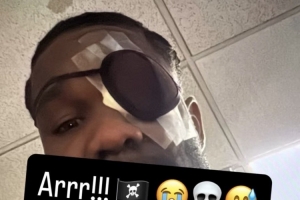艾頓本場比賽第二節(jié)遭遇對手擊打面部后左眼受傷退出比賽。艾頓曬出了自己左眼被包扎后戴上眼罩保護的自拍,并寫道:“?。。?!???????????”