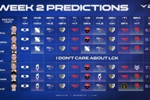 體育資訊1月21日訊 LCK官方發(fā)布了本周的賽事預(yù)測:今天全員預(yù)測DK獲勝 / T1對戰(zhàn)KT全都看好T1。