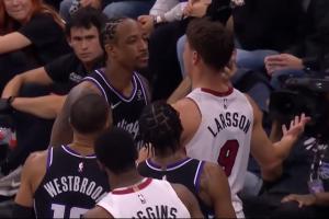 體育資訊1月21日訊 NBA常規(guī)賽,熱火130-117戰(zhàn)勝國王。在比賽中,熱火球員拉松和國王球員德羅贊發(fā)生了兩次沖突。