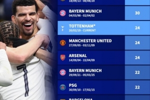體育資訊1月21日訊 歐冠聯(lián)賽階段第7輪比賽,熱刺在主場以2-0的比分戰(zhàn)勝多特。盡管在聯(lián)賽中表現(xiàn)不佳,但熱刺在歐冠中卻重拳出擊。本場比賽之后,北倫敦球隊歐戰(zhàn)主場不敗場次增加到24場。根據(jù)德國轉(zhuǎn)會市場的統(tǒng)計,熱刺歐戰(zhàn)主場不敗場次足以位居第3位。