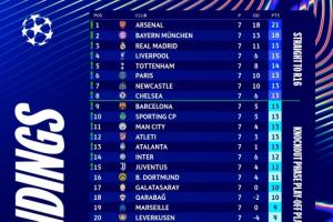 體育資訊01月22日訊 歐冠聯(lián)賽階段第7輪戰(zhàn)罷,僅剩1輪的情況下僅有2隊(duì)鎖定直通名額。