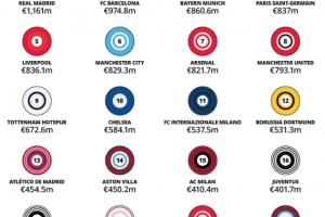 拜仁慕尼黑(8.61億歐元)位列前三,由于參加2025年國(guó)際足聯(lián)俱樂(lè)部世界杯帶來(lái)的轉(zhuǎn)播收入增加,其排名較去年上升兩位。