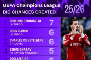 體育資訊1月23日訊 本賽季,索博斯洛伊成為利物浦陣中創(chuàng)造力的源泉之一,尤其在歐冠賽場上。根據(jù)Squawka的數(shù)據(jù)統(tǒng)計,索博斯洛伊在歐冠中創(chuàng)造7次重大機會,位居所有球員之首。