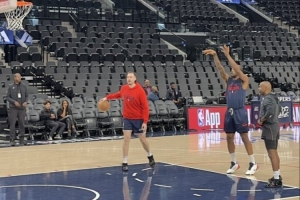 據(jù)快船隨隊(duì)記者Tomer Azarly報(bào)道,快船倫納德賽前來到了場上進(jìn)行熱身。